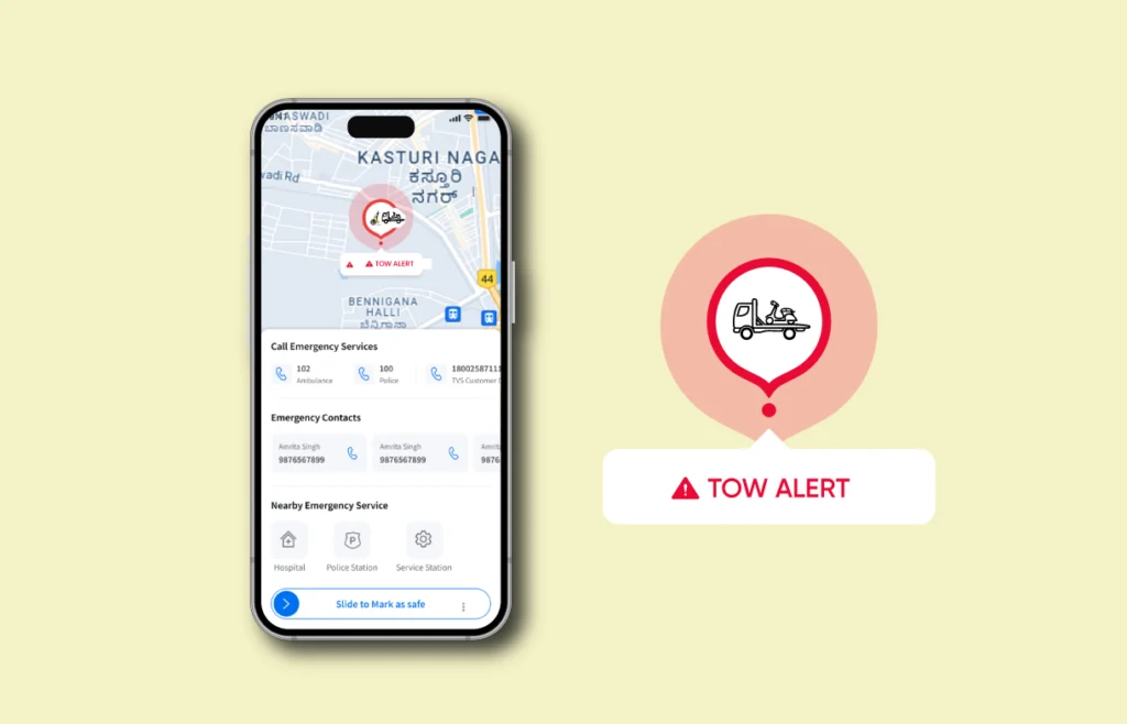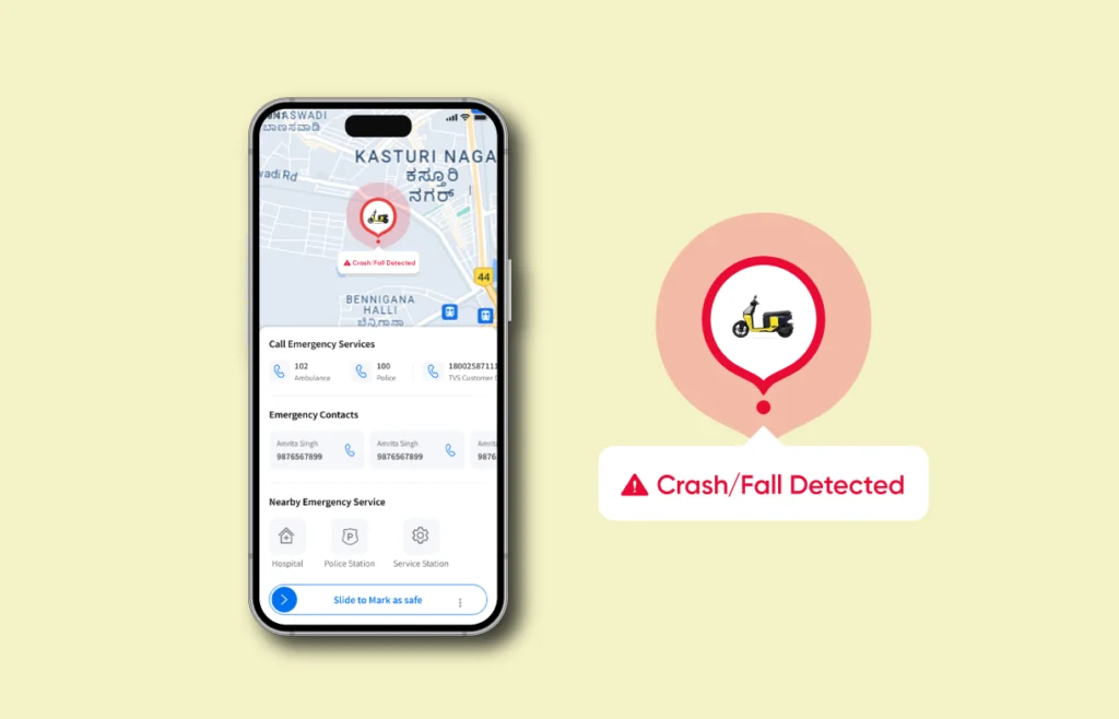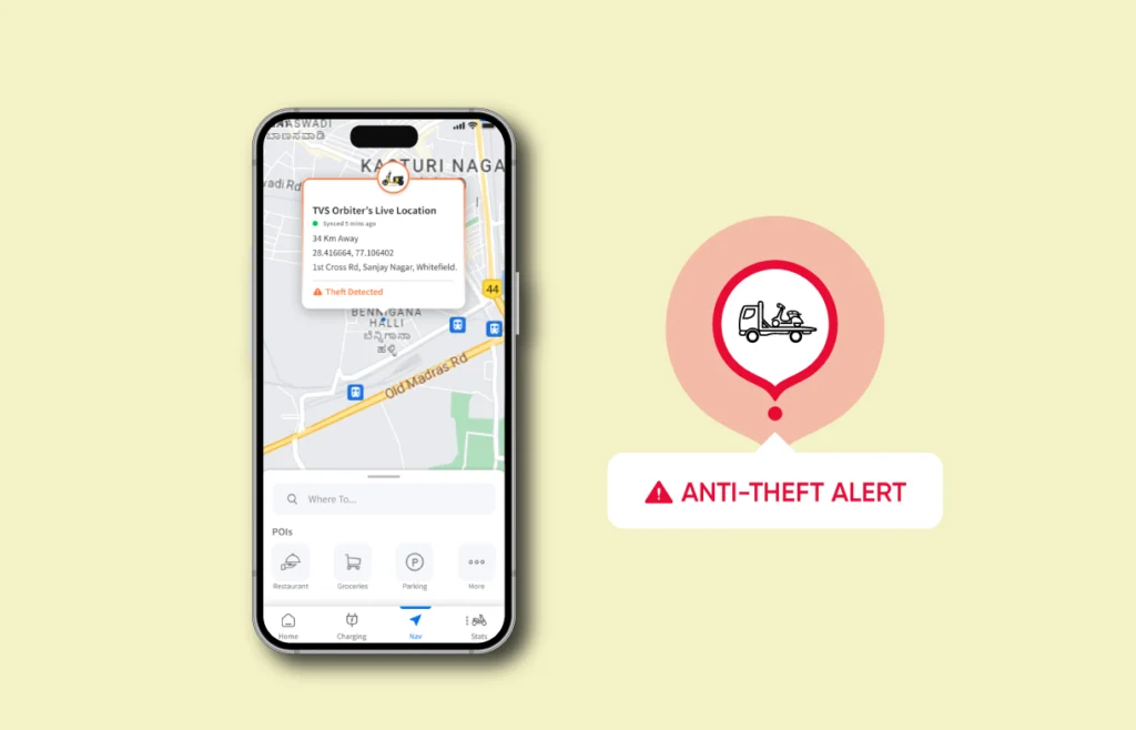 Home » TVS Electric Scooters » Tvs Orbiter » Safety TVS Orbiter Safety Safety Tests Rigorous Safety tests engineered to deliver a lasting vehicle Anti-Theft Alert Get alerts when your vehicle is tampered with or started without authorization Geofence Set virtual boundary & get alerts outside allowed permitted area Tow alert Instant alert if your vehicle is being moved without permission Crash & Fall Alert Be safe on the roads. Your loved ones get to know your location with an instant SMS Reach Us Now Experience superior service and unmatched quality today! Call now Whatsapp Location Other Features DESIGN Comfort convenience Concectivity