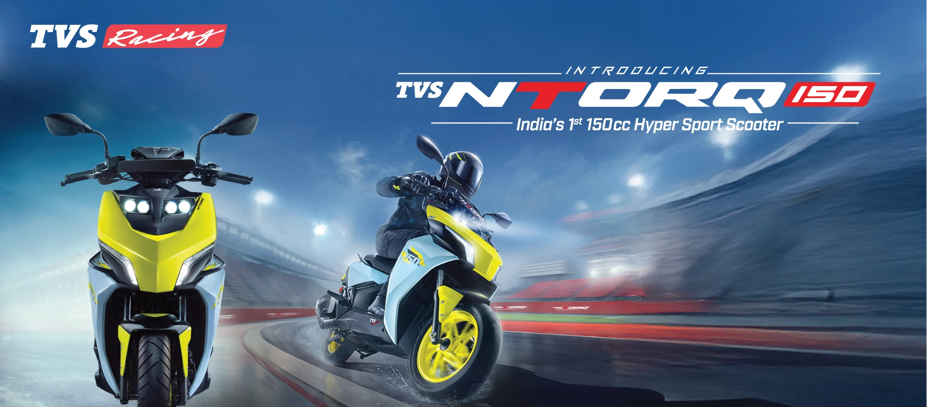 Make every ride exciting with the TVS NTORQ 150. Packed with punchy 150cc performance, an advanced TFT instrument cluster and industry-grade Ride Modes, NTORQ 150 gives you instant control and responsive power. Command your ride with Voice Assist, flaunt race-inspired graphics, and own the streets with style.
